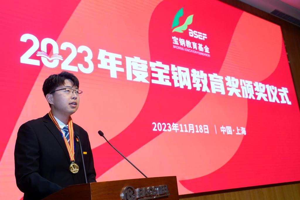 11月18日,宝钢教育基金会2023年度工作会议暨宝钢教育奖颁奖仪式在上海举行。德赢AC米兰官网2020级机械设计制造及其自动化(中澳合作办学)专业本科生王君豪以评审分数第一的成绩获得优秀学生特等奖,并作为唯一学生代表在颁奖仪式上发言。