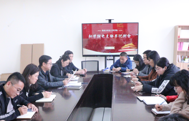 3月10日下午,学院在知行南楼615会议室召开2021年新学期党支部书记例会,传达学校相关会议精神,安排部署学院新学期党建工作。党委书记彭兆强,党委副书记单登科、高佚婧,专职组织员和全体支部书记参加会议,会议由高佚婧主持。