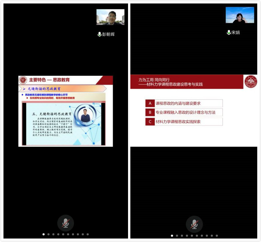 培训会上,彭朝晖以《数据库系统》一流课程的建设与申报为切入点,分享了自己在一流课程建设与申报过程中对于课程思政要素的有效探索实践及可行性、有效性研究,指导老师们将课程知识与思政育人素材相结合,将思想政治教育与专业知识技能教育有机融合,通过创新授课形式与教学方法,更好地将思政教育无缝衔到教学的核心环节,实现知识传授与价值引领有机统一,达到知识传授和育人的双重目的。宋娟以《力为工用 同向同行——材料力学课程思政建设思考与实践》为题,从“课程思政的内涵与建设要求、专业课程融入思政的设计理念与方法、材料力学课程思政实践探索”三个方面进行了讲解,帮助老师们进一步厘清课程思政与思政课程的异同点,引导大家立足核心目标,逐维分解、整合课程思政目标,进一步把握课程思政的实施路径。她指出,一要准确挖掘,基于课程目标、学情分析与学科属性,挖掘思政元素;二要自然融合,重点使用与课程内容相关的课程思政教学资料;三要有效协同,基于一致性建构原则进行反向设计和正向实施;四要完善实施,创建吸引学生主动参与讨论的教学情景,注重多元化、形成性评价。在交流互动环节,两位老师就大家的提问一一作出解答。