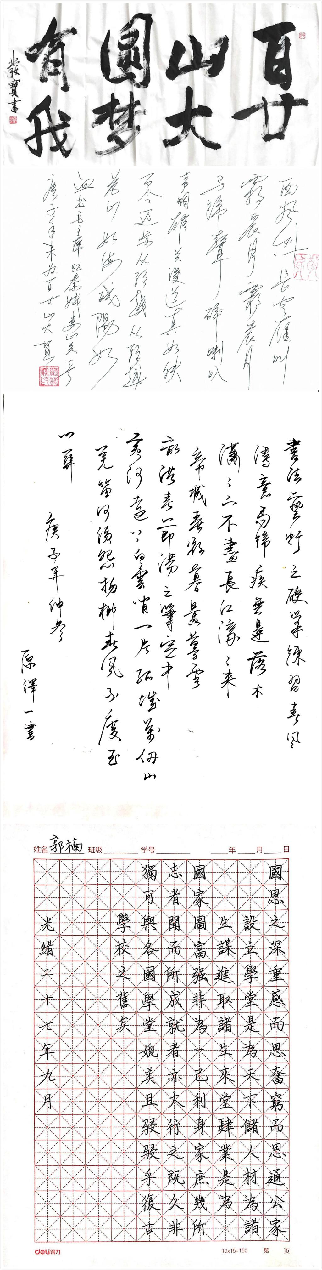 本次活动以“百廿山大,圆梦有我”为主题,通过作品展示学校各项事业的新发展、新成就,展现山大人“追求卓越齐奋进,只争朝夕创一流”的精神风貌和责任担当,抒发广大教职员工的幸福感和成就感。比赛共收到来自学院教职员工的原创作品45幅,经评选选出一、二、三等奖若干,作品种类包括毛笔书法、硬笔书法、油画、摄影等。作品主题鲜明、立意新颖,老师们以书言志、以画抒怀、以影寄情,通过艺术作品表达了对学校的情感与深切祝福。