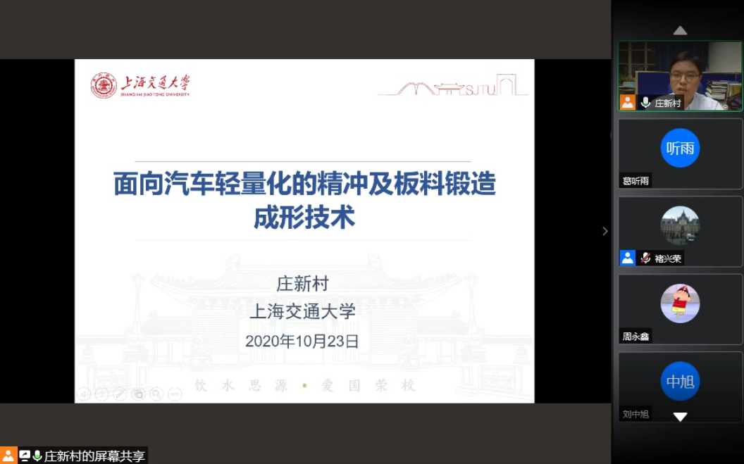 10月23日晚,上海交通大学庄新村教授做客学院博士高端学术论坛,为学院师生带来一场题为“面向汽车轻量化的精冲及板料锻造成形技术”的学术报告。此次报告会由学院博士生导师褚兴荣副教授主持。