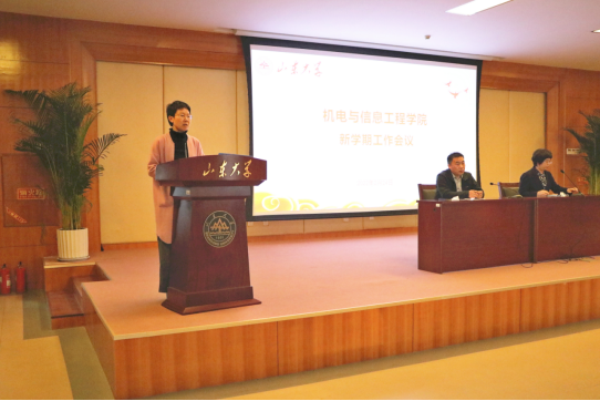 王丽强调说明了学院近期的几项重点工作。学校春季学期工作会议召开后,学院班子成员立即赶赴济南与材料科学与工程学院、机械工程学院交流,旨在对标先进、强化三方合作,统筹推进三个学院在材料、机械等学科的一体化融合发展,大力推动三方在“双一流”建设、学科评估、学位点建设中协同融合、一体发展、争先进位。学院要主动对标国家重大发展战略,深入融合山东省新旧动能转换对人才和智力的需求,深入推进产学合作、产教融合、科教协同。目前,学院正与华为技术有限公司南京研究所未来技术学院共同建设“双师型”教师培养培训基地,筹建“速通通信实验室”;学院要不断深入服务地方,联合合作企业开展研究生联合培养,重点培养校企人才,开展第一批点对点同等学力申硕工作。