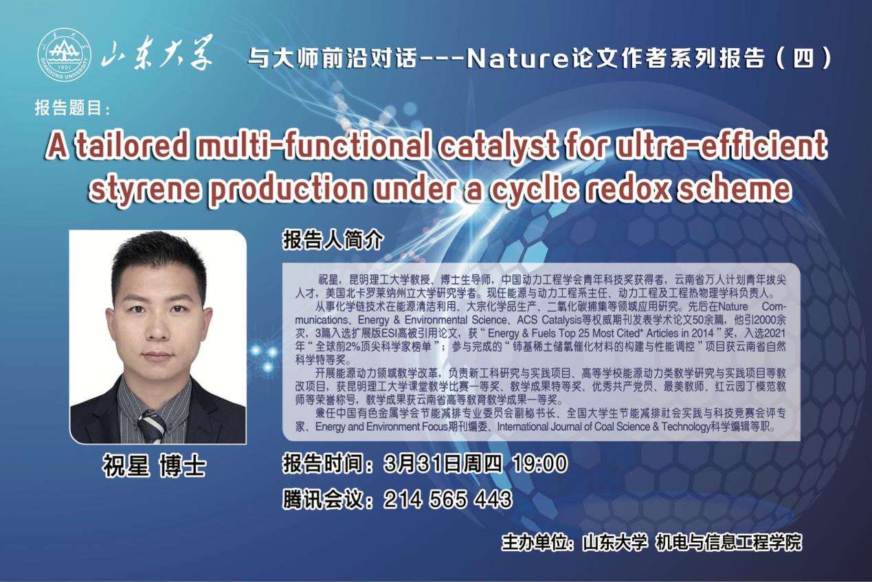 3月31日晚,第四场报告由澳大利亚皇家墨尔本理工大学林翰研究员、昆明理工大学祝星教授主讲,他深入浅出的为同学们讲解了有关Nature文章中生物化学链相关的知识,他指出利用生物链技术原理主要是通过过程强化实现化石燃料清洁燃烧及碳捕集、空气分离、碳氢化合物高值化利用、生物质气化、分解H2O和CO2、CO2捕集、合成氨、污染物脱除、分离提取、热化学储能等。祝教授同时提出了新的展望,一是有待开展更大规模实验来验证新工艺,二是可以通过间歇性的供氧来实现化学链乙苯氧化脱氢,三是工艺热管理需考虑到换热。会上祝教授就本科生怎么过好大学生活提出他个人建议,同学们表示受益匪浅。