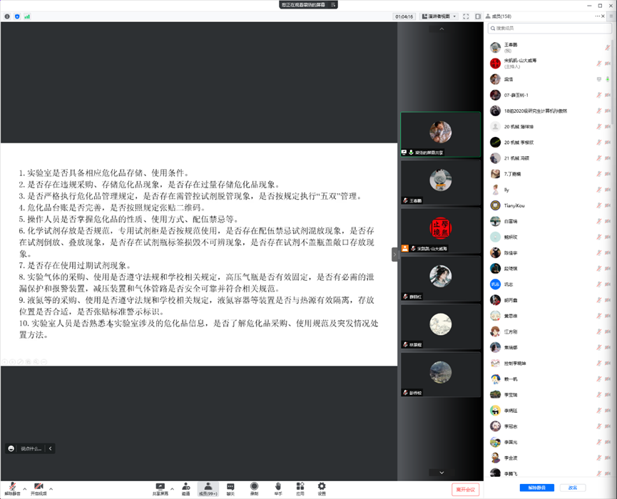 为落实学校安全工作专题会议精神,进一步加强实验室安全教育,2022年6月24日,德赢AC米兰官网召开线上实验室安全教育专题讲座,本次讲座由高级实验师梁浩主讲,宋凯凯副院长主持,学院全体实验员、安全员、研究生等共150余人参加。