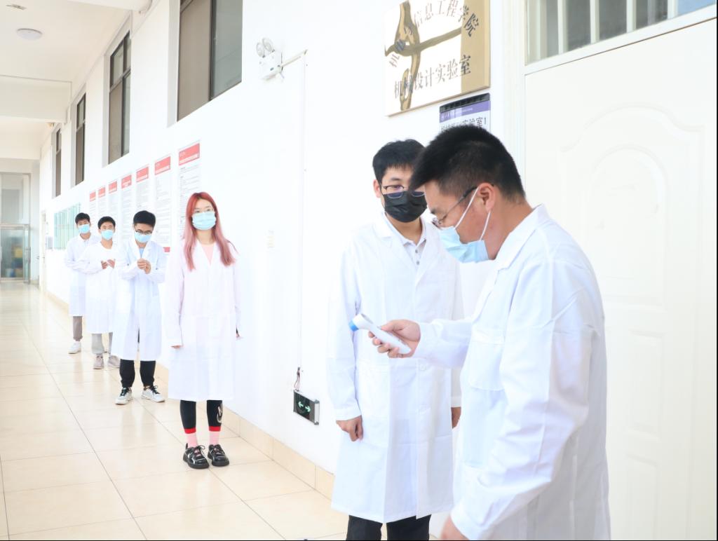 学生间隔1米排除测温进入实验室