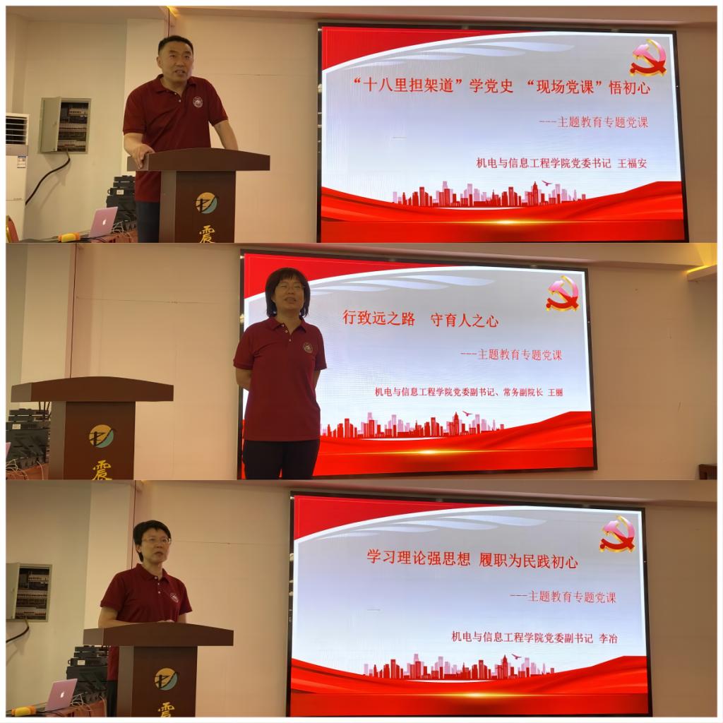 随后,学院党委书记王福安同志、常务副院长王丽同志、党委副书记李冶同志分别为大家带来了“‘十八里担架道’学党史、‘现场党课’悟初心”、“行致远之路、守育人之心”、“凝心聚力学党史、履职为民践初心”为主题的党课。他们将今天的现场参观学习与工作相结合,要求大家要对标革命先烈,践行“为人民谋幸福”的初心,始终把人民放在心中最高位置。