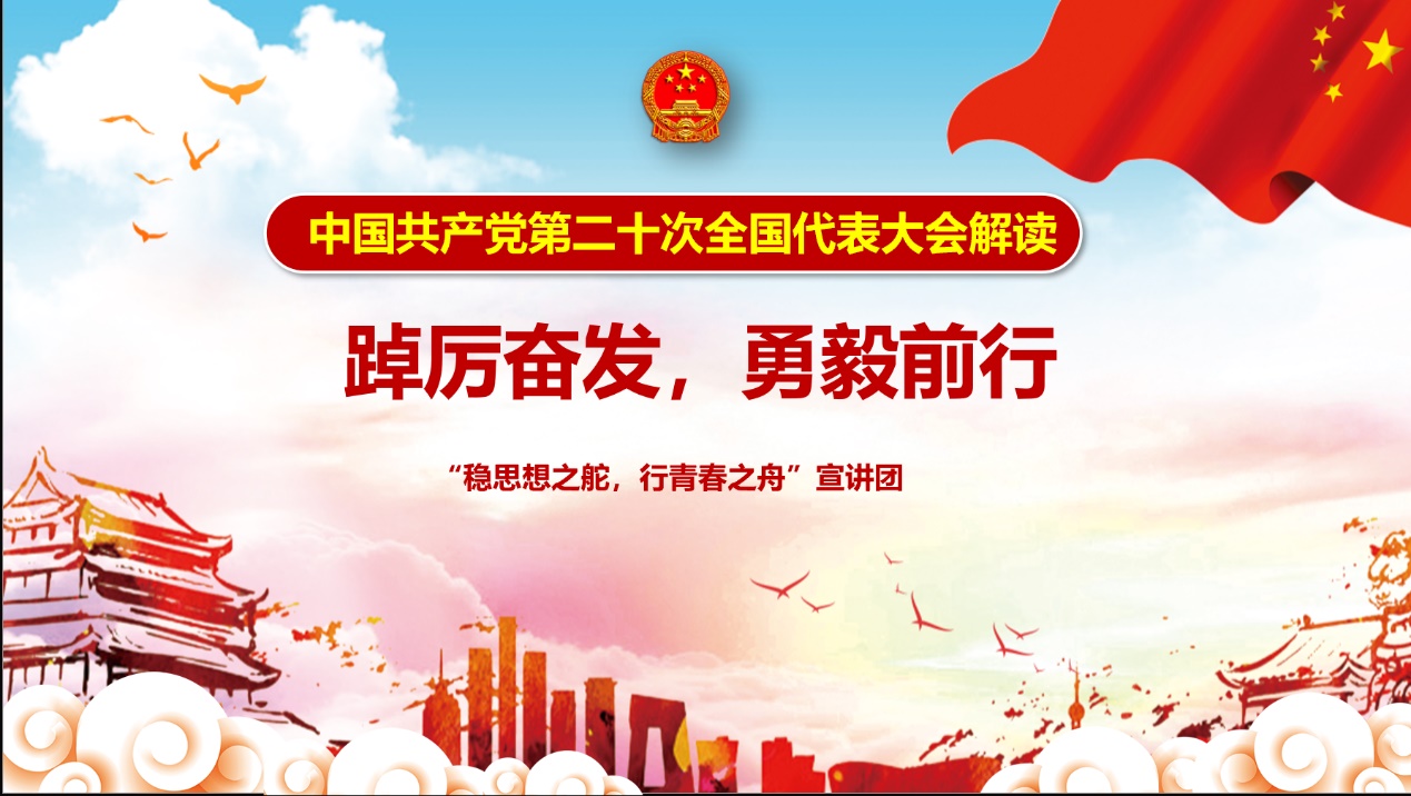 这次党的二十大宣讲活动,既是我们向外界的“输出”,更是对我自己的一次“输入”。通过准备宣讲,我更深刻地体悟了党的二十大的内容、意义及精神。一代人有一代人的长征,一代人有一代人的担当。立身于世界百年之未有的大变局中,新时代中国青年更应该踔厉奋发,笃行不怠,练就过硬本领,锤炼坚毅品格,为国家发展、民族复兴注入强大的青春力量。当每一份青春的力量都向着民族复兴的梦想汇流,我们必能让更多“不可能”变成“可能”。这个伟大的时代,属于英姿勃发的中国青年,属于不懈奋斗的青春中国!