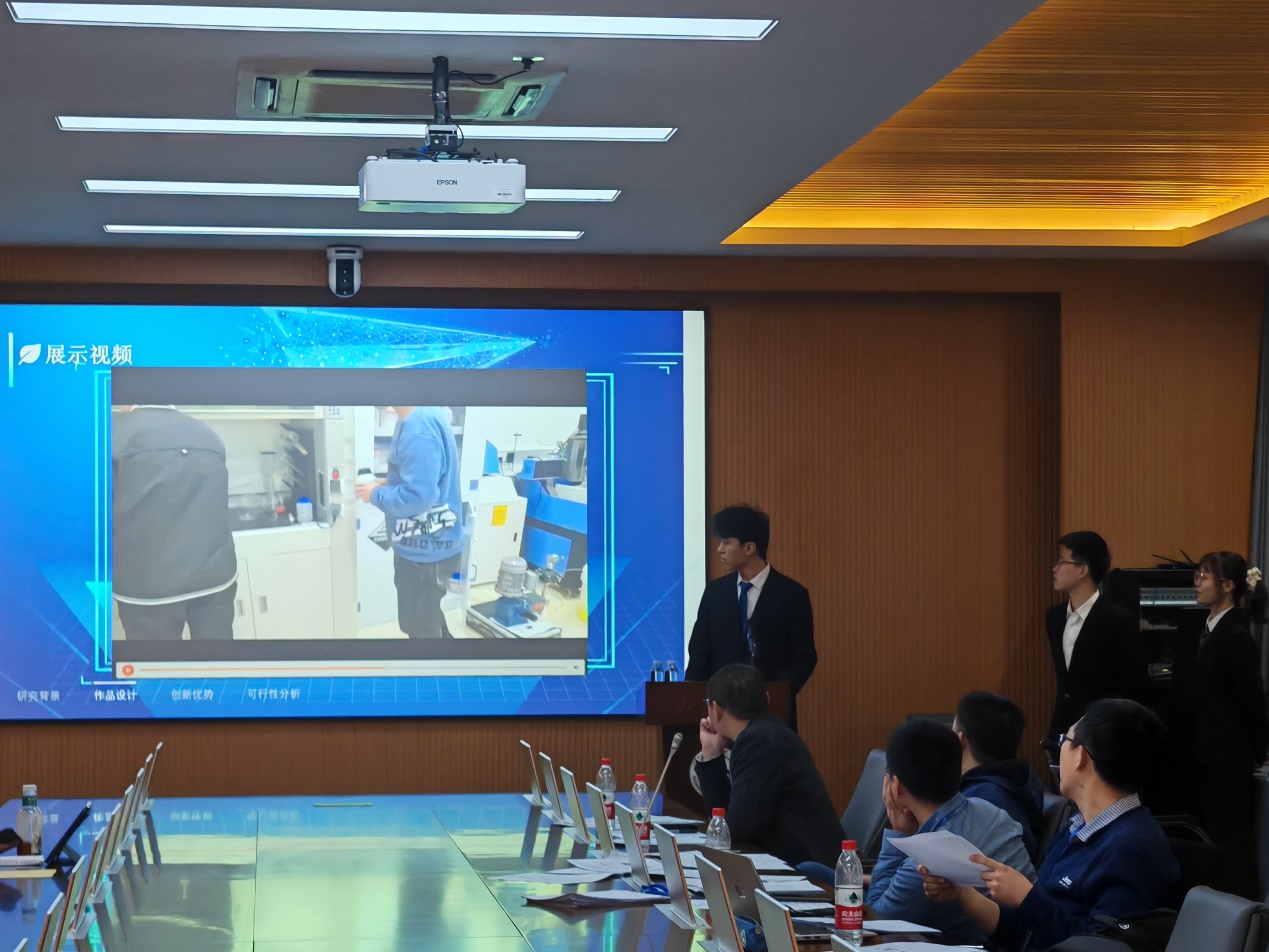 在决赛答辩现场中,各队伍依次进行了产品陈述答辩,评委们依据自身经验,为各参赛团队指出作品不足,提出一系列建设性修改意见;围绕选题与应辩、设计与图纸、实物模型、创新性、实用性与经济性、团队合作等评审指标,依据要求进行评定,确定了大赛的获奖名单。大赛优秀作品后期将推荐参加相关省赛、国赛。