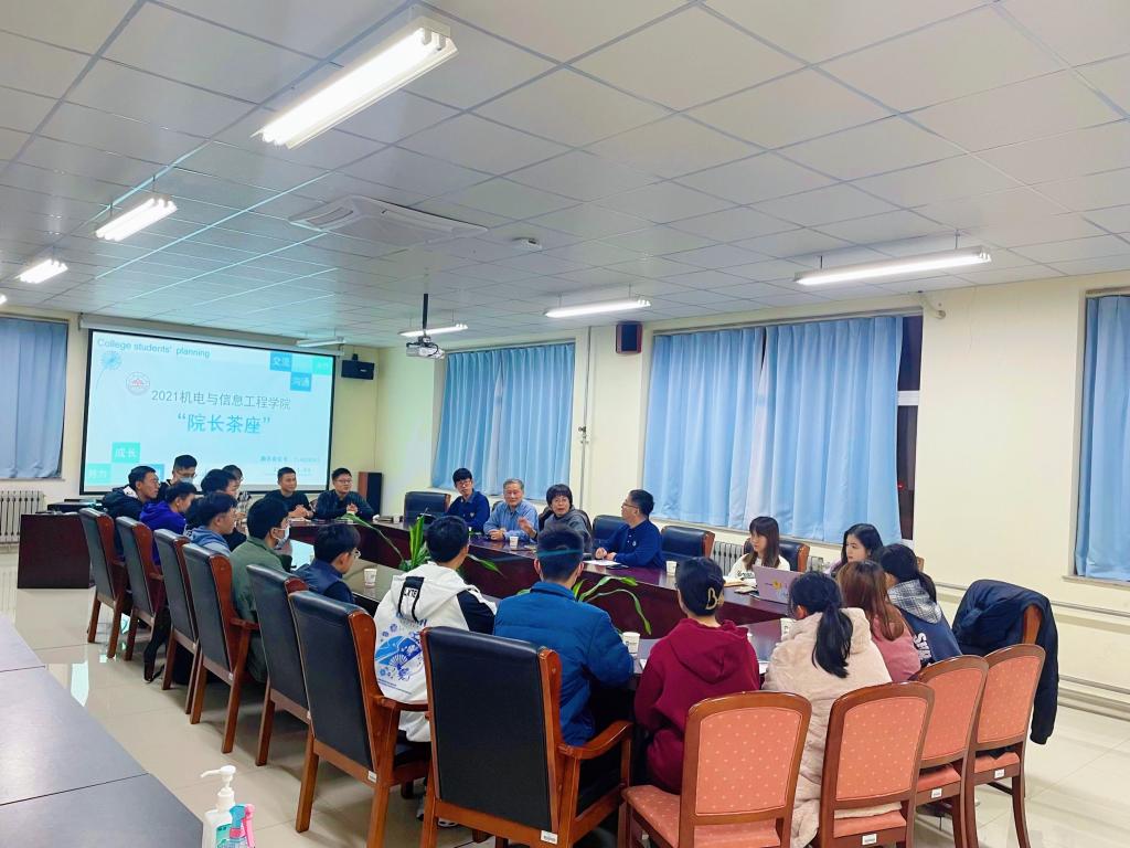 11月6日晚,德赢AC米兰官网在知行南楼601举行了第二十一期”院长茶座”活动。学院校友会名誉会长云昌钦,常务副院长、党委副书记王丽,党委副书记单登科,副院长郭春生,参加了座谈会,同学生代表亲切交谈,就同学们学业、生活和个人发展等问题深入交流。2021级辅导员老师姜文,孙嘉阳,刘萌萌参加现场座谈会。