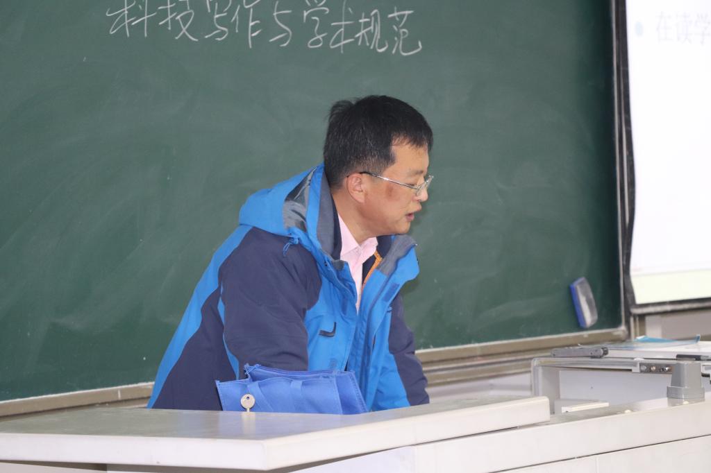 会议伊始,王成优老师以诙谐幽默的自作诗开场,表达了对研究新生学术生涯的期盼,讲座内容分别从科学研究与科学写作的方法、历史视角、科学写作的定义和类型以及关键特征清晰方面讲述如何搭建一篇科技论文。王老师强调,科技论文不等同于文学写作,更注重客观存在性与创新性,文字精准干练,切勿内容造假、范围过大、内容空泛,且必须以标准化格式呈现。同时,王老师着重提醒一篇有效发表的科技论文须是首次公开,包含足够的信息使同行能够评估观测、重复实验、评估思维过程,切勿存在学术不端现象。最后,王老师表述希望各位研究生能够遵守学术规范,加强科研锻炼,努力成长为有担当时代新人。