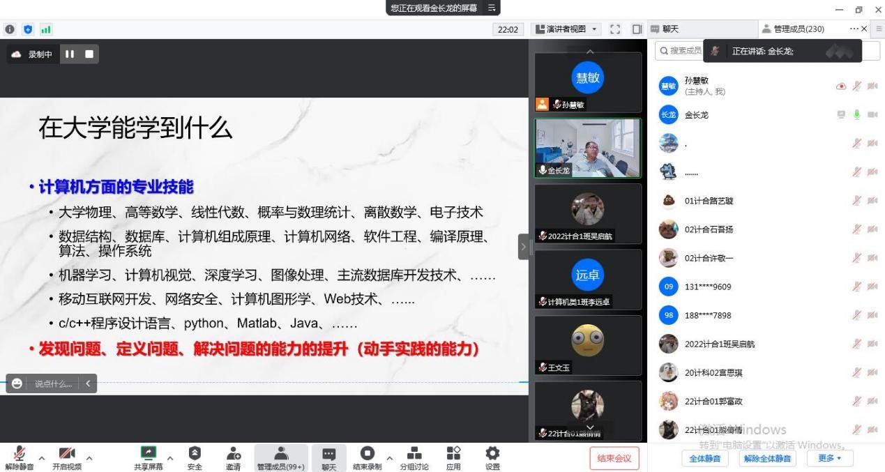 为加强家校沟通,做好新生适应性教育,引领2022级新生及家长细致了解专业发展前景、学科优势、就业去向,更好地培养学生专业素养,德赢AC米兰官网于9月8日在云端举行“家校携手齐心共育”2022级新生家长会暨专业认知讲座。学院常务副院长、党委副书记王丽、副院长郭春生、党委副书记李冶、孙宁、各系主任出席会议,会议由新生辅导员主持,2022级家长们共同参与。