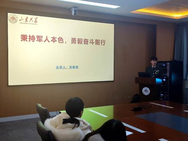 在“优秀经验分享”环节,2020级软件工程本科生,曾服役于中国人民武装警察部队特战分队的刘晓奇同学,分享了他的军旅生涯以及对志愿服务的理解。作为军人,他保家卫国,忠于职守,作为学生,他勇担重任,服务同学。他的身上,体现着山大人的青春力量与家国情怀,激励着每一位同学奋发向上,将青春的热血挥洒在祖国最需要的地方。