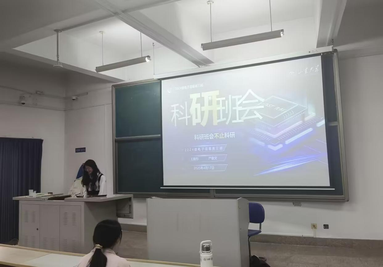 为深化科研思维认知、激发科研兴趣、厚植班级科研协作氛围,助力同学们在科研道路上实现成长蜕变,4月17日,24级电子信息类03班于学思楼558教室开展“破茧成蝶:科研路上的成长与蜕变”主题科研班会。本次活动由科研委员王雨彤同学主持,电子信息类03班全体同学共同参加。