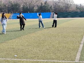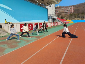 田径小组的同学们学习了系统的热身活动和跳远、扔铅球的基本动作。在练习中,同学们随时叫停指导,针对动作不到位、角度错误等问题进行一对一纠正。