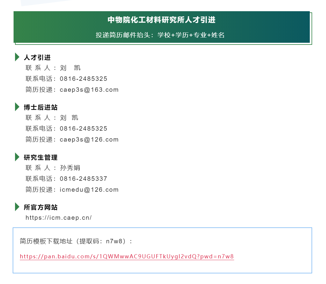 中国工程物理研究院创建于1958年,是以发展国防尖端科学技术为主的国家级综合性科研机构。院属化工材料研究所(简称中物院三所)集应用基础研究、设计开发、研制生产及试验于一体,主要从事含能材料、火工品、高分子材料、安全弹药的设计、研制、生产、评价及应用工作,并向激光功能材料、能源新材料、安全应急技术与装备等领域拓展,向着“全球国防军工领域特色鲜明,有重要影响力的顶尖专业研究所”目标砥砺奋进。