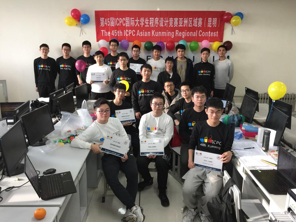 在2020年12月19-20日举办的南京站线上赛中,由于帅聪、周鑫、宣启楠组成的“蓝到紫”队再度发力,在前三小时便攻下4题,成功斩获本届校区的第一枚铜牌。在2021年4月2-3日举办的昆明站线上赛中,由18级计算机刘文涵、18级计算机庄昊霖、17级计算机李朝阳组成的“玛迦山的朝阳”在开场不到一个半小时就解出三道题,稳住了榜上前百名的位置,随后又在封榜前再接再厉,再下两题,最终以第59名的绝对优势拿下一块宝贵的银牌,并为校区拿下东亚区决赛名额。同场比赛中,由周鑫、宣启楠及17级软件工程肖龙组成的“我觉得群名就很好”同样努力向前,拿下校区第二枚铜牌。